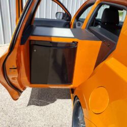 Onlookers go crazy when you push the button to open up the XD to entertain. The rear side doors open simultaneously to reveal the Built-in Refrigerator on the drivers’ side and the built-in Sink on the passenger side. Then all attention goes to the top of the rear hatch. The window section has two video monitors to play your favorite Movie. The lower section of the hatch sides out revealing an LP Gas Grill!