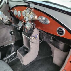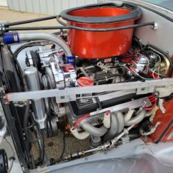 He built a 435 hp 355 Chevy Engine with a FI-Tech Fuel Injection set up. The power is driven through a Tremec 5-speed transmission and Heidts IRS Rear Suspension. The Heidts IFS with Rack & Pinion Steering and Disc Brakes were utilized up front.