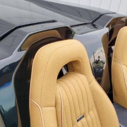 The roof is a manual retractable hardtop. It originally was lined with a tan fabric top over the fiberglass roof. The hardtop and deck lid have been painted to look more like the show car. This car is rarely driven with the top up.