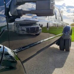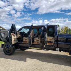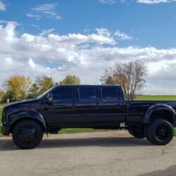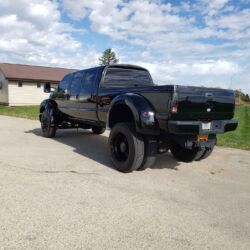 While this diesel-powered dually’s imposing size may serve as its main appeal, the pickup’s list of other attractive qualities is also impressively long. Visually, this truck’s all-black exterior is probably the most subtle element of its brazen and overall unapologetic appearance. The black-painted Ford bodywork sits atop an air ride chassis and cab with an 8-foot dually bed that offers ample space for whatever needs hauling and to whatever place, and its Allison automatic transmission ensures effortless control down any highway or on any off-road adventure.