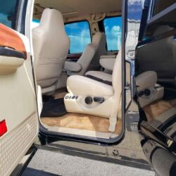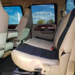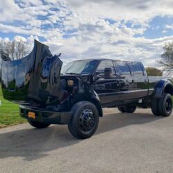 Having left the factory in 2004, this mountain of a truck was later the subject of a rebuild that focused on the heart of this heavy hauler: the plenty-powerful 5.9L Cummins Diesel 6-cylinder engine, which has been worked for just 32,000 miles since. The truck’s black and tan interior features power front-row seats, power second-row seats with a flip-up seat/console combo, and third-row bench seats. Power running boards help passengers climb aboard while power windows, a power moonroof, and air conditioning all serve to keep a comfortable climate under the complete driver or passenger control. Tilt wheel, navigation, and cruise control all enhance the piloting experience while an AM/FM/MP3/DVD/CD stereo and DVD player aim to entertain those in tow. To properly round out its bigger-is-better image, this unforgettable Ford rides on not four but six 22.5-inch aluminum alloy wheels, all of which are wrapped in massive Hercules tires.