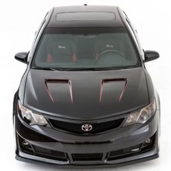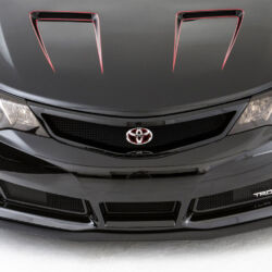For its transformation, the Camry was given a custom wide-body kit, new diffusers front and rear, a dual exhaust system from the engine back, lowered suspension, 18-inch wheels and a race-inspired interior with bucket seats borrowed from the Lexus IS F.